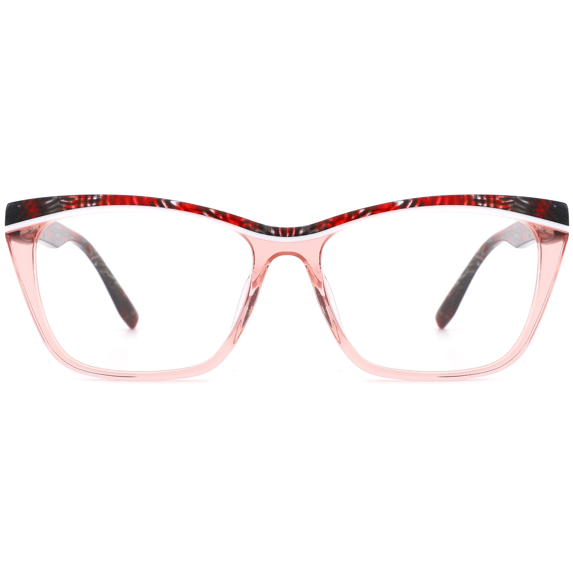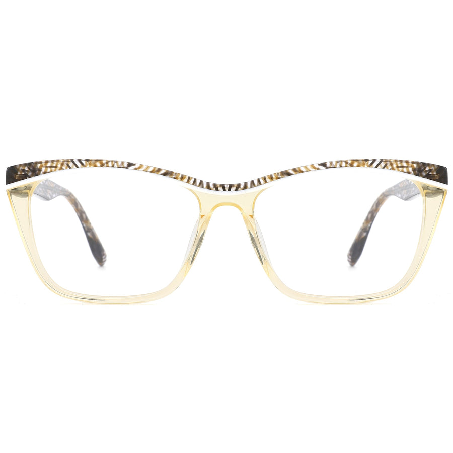 Mit einem leichten Acetatgestell bietet diese Brille eine stilvolle Kombination aus Mode und Komfort. Das Vollrand-Design ist in verschiedenen transparenten und gemusterten Farbvarianten erhältlich und passt sich mühelos unterschiedlichen Looks an. Die sanft konturierte, eckige Form schmeichelt einer Vielzahl von Gesichtsformen, während filigrane Akzente entlang des oberen Rands dem Design eine raffinierte Note verleihen. Federscharniere sorgen für zusätzlichen Tragekomfort und Langlebigkeit.