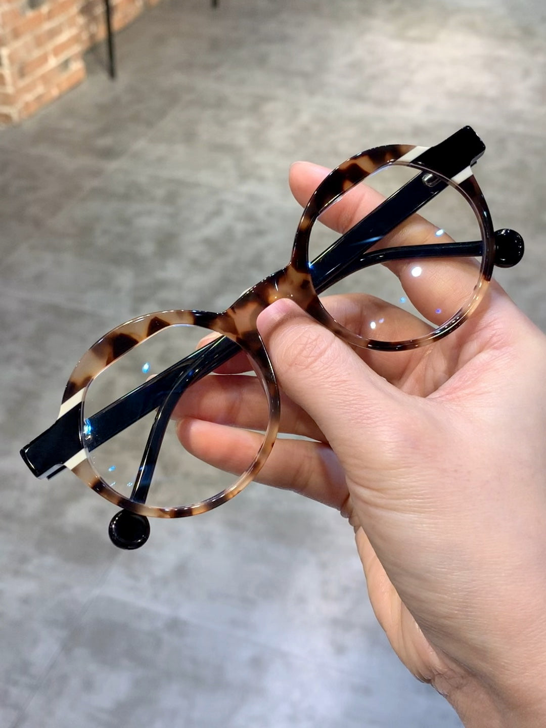 - Brillenform: Rund