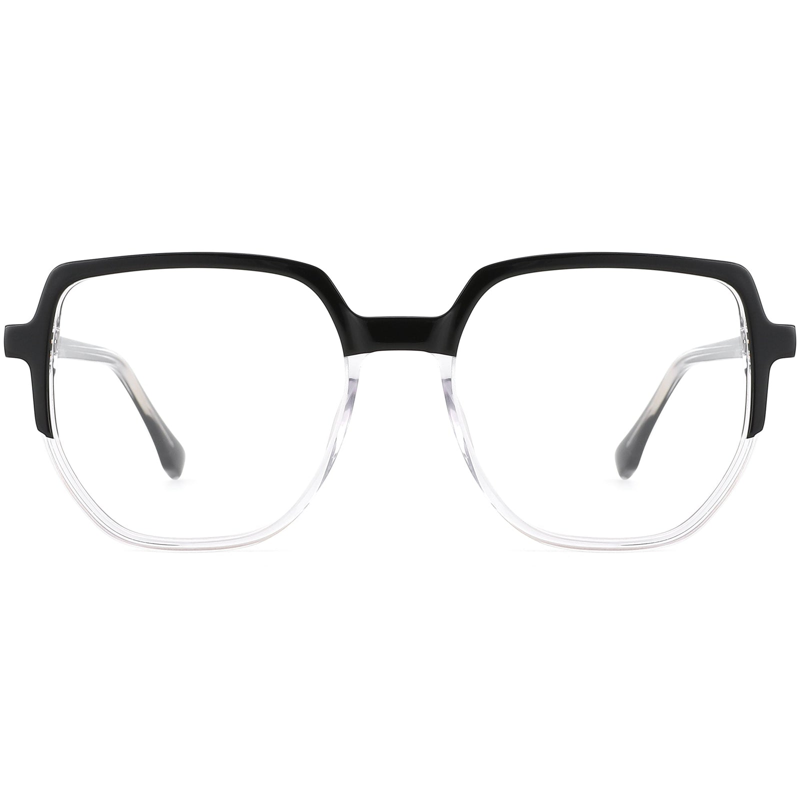 Elevate your style with these luxe but minimalist square glasses. Featuring black accents on the top rim and a translucent bottom, they are crafted from glossy hand-polished premium acetate. With a timeless shape and smooth design lines, spring hinges provide added comfort for everyday wear.