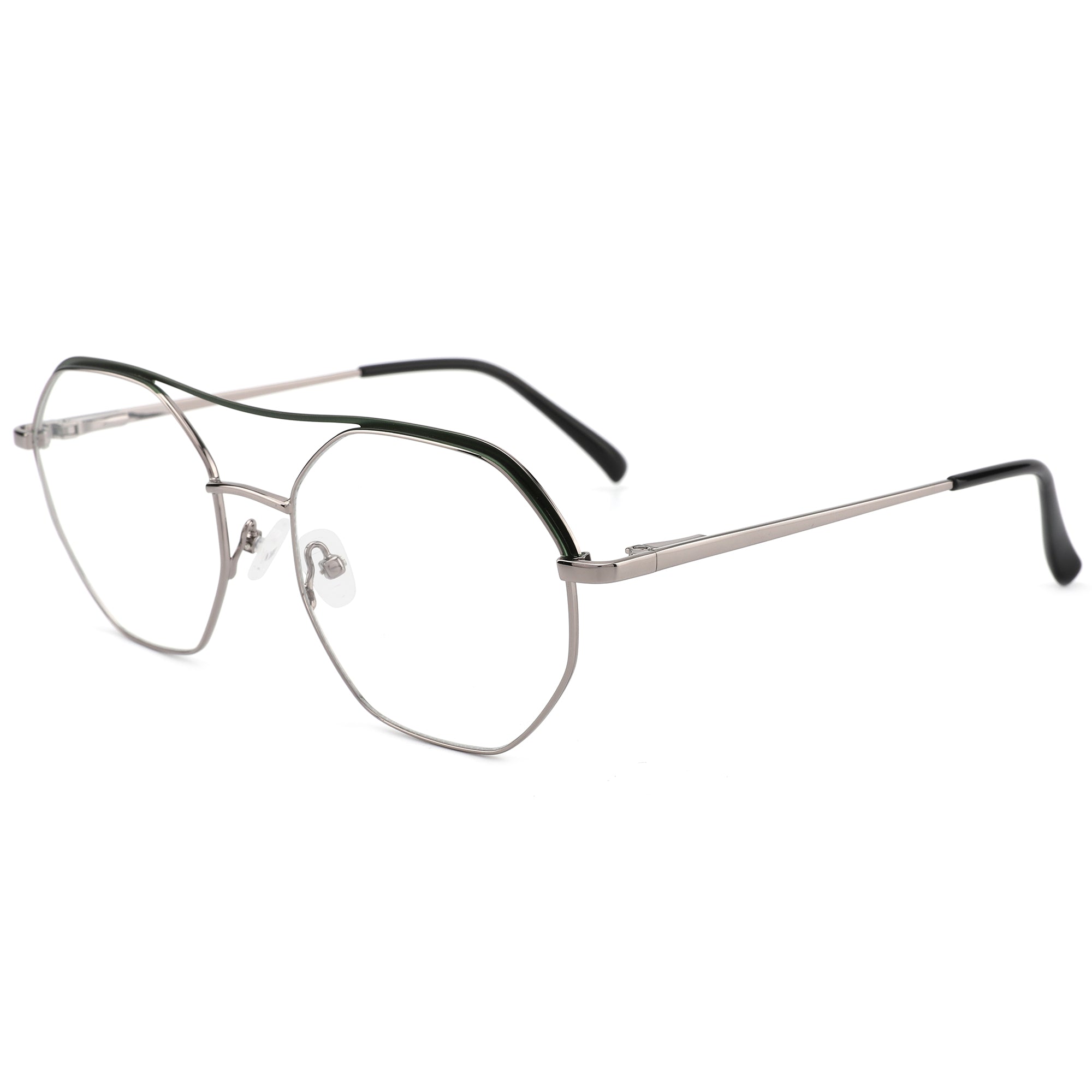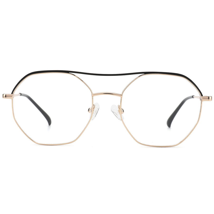 Unsere geometrischen Fassungen mit Flat-Top und Doppelsteg sind aus ultraschlankem, leichtem Metall gefertigt und bieten einen modernen, markanten Look. Mit Federscharnieren und bequemen Nasenpads sorgen sie für eine ausgewogene Passform – ideal für den täglichen Gebrauch und legere Anlässe, sowohl für Damen als auch Herren. Perfekt für runde Gesichtsformen strahlen diese Brillen einen kreativen und individuellen Stil aus.